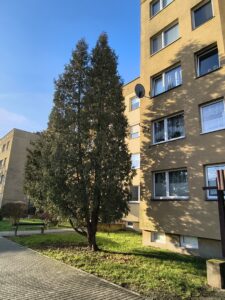 - Świerk – rejon budynku przy ul. Rodzeństwa Krzyżowskich 42, (na prawo od wejścia do klatki), obwód pnia 65 cm, na wysokości 5 cm nad poziomem terenu (55 cm na wysokości 130 cm nad poziomem terenu).